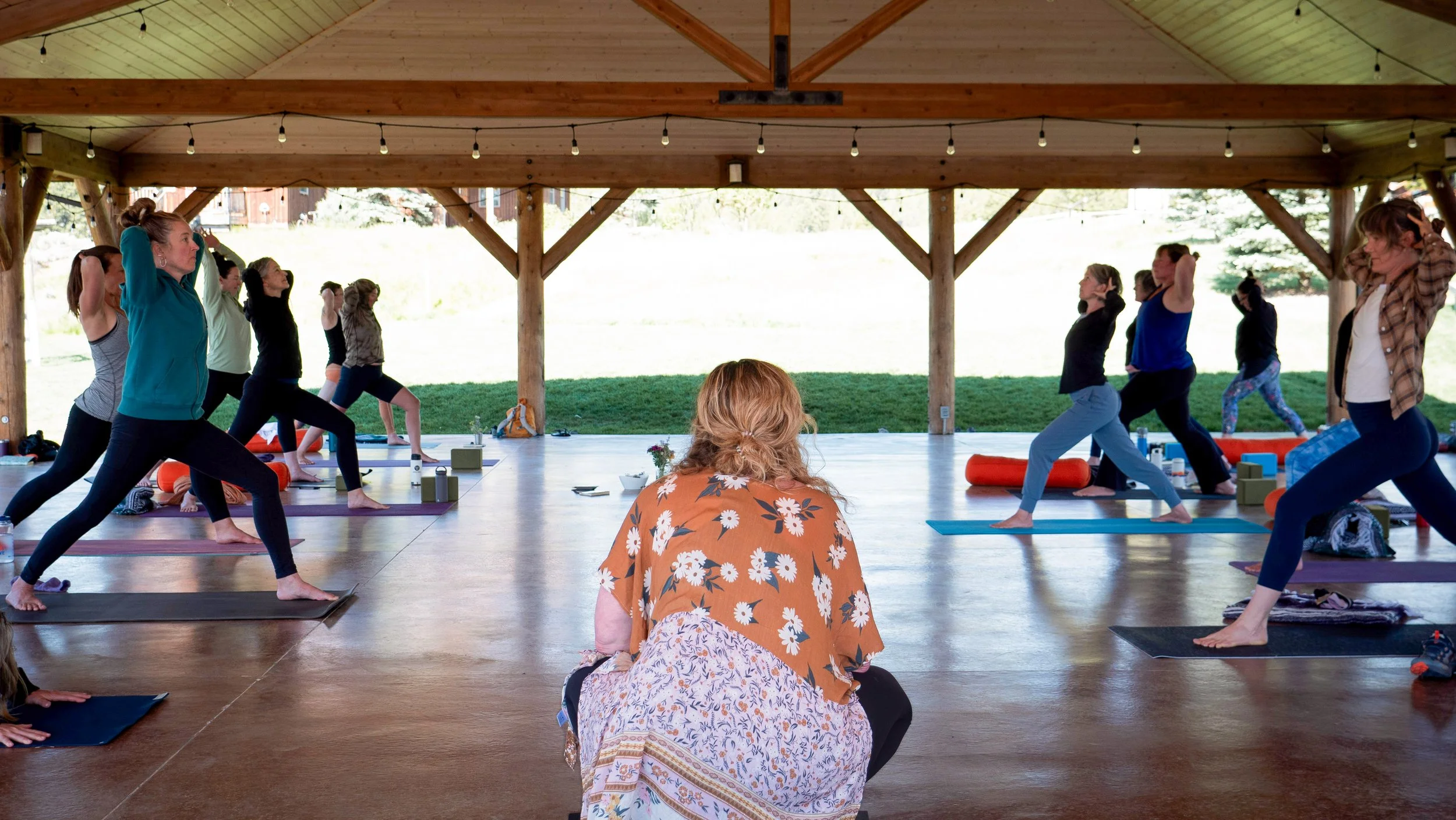 The property is tucked away in nature with trails out the doors to meadows, streams, and mountains. The main lodge is where we’ll eat breakfast & dinner and create intentional conversation & connect together. The lodge has plenty of room to spread out and find nooks for privacy when needed. Yoga and community acupuncture will be held in a covered open-air pavilion.